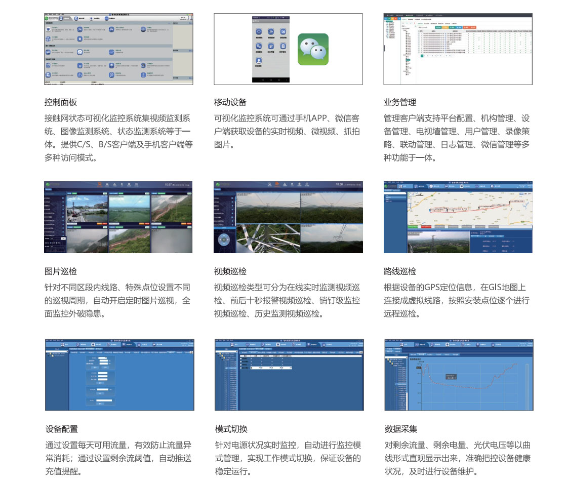 鐵路供電的特點(diǎn)是線路長,地點(diǎn)偏僻,環(huán)境復(fù)雜,單純依靠人工巡檢效果差,安全風(fēng)險大,隱患重重,供電安全直接影響著鐵路運(yùn)輸?shù)恼V刃颉=佑|網(wǎng)狀態(tài)可視化監(jiān)控系統(tǒng)是一套全方位監(jiān)管電氣化鐵路牽引供電線路的遠(yuǎn)程巡檢系統(tǒng),該系統(tǒng)根據(jù)高速鐵路供電設(shè)備運(yùn)行的安全需求,可對上跨橋、上跨電力線、隧道出入口、大風(fēng)區(qū)等重點(diǎn)位置進(jìn)行圖像/視頻監(jiān)測,對故障事件起到“早發(fā)現(xiàn)、早預(yù)防”的作用,保障高速鐵路運(yùn)營秩序,保障電氣化鐵路接觸網(wǎng)高效、安全、可靠的運(yùn)行
