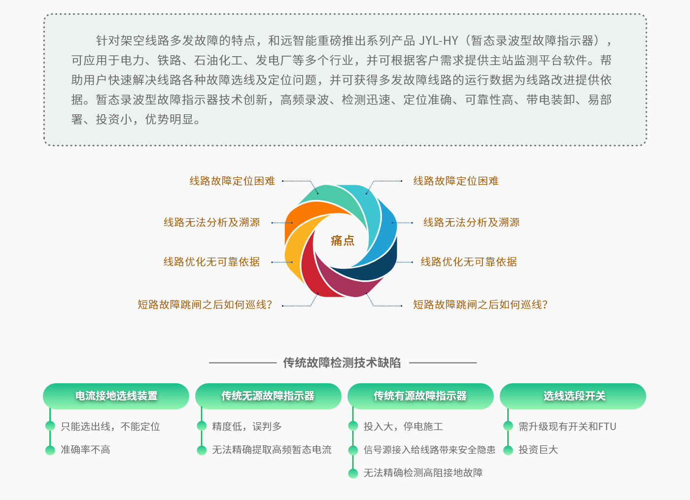 作為智能電網(wǎng)建設(shè)的重要環(huán)節(jié),配電網(wǎng)在電力系統(tǒng)中起著至關(guān)重要的作用。在我國,配電網(wǎng)在整個(gè)電力系統(tǒng)中尚處于非常薄弱的環(huán)節(jié),配電網(wǎng)絡(luò)結(jié)構(gòu)復(fù)雜、線路長、分支多,用戶遭遇的停電,90%以上由配電系統(tǒng)故障引起,其中瞬時(shí)性故障、弧光故障、高阻故障占比超過50%,且故障查找、分析和運(yùn)行數(shù)據(jù)的獲取非常困難。