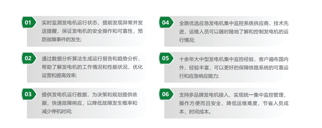 應急發電機集中監控系統由發電機監控裝置和集中監控中心組成。發電機監控裝置采集每臺發電機、發動機的數據以及運行工況,通過無線或者有線的通訊方式實時傳輸至集中監控中心。 集中監控中心可集中監控發電機的運行工況,并將采集的數據進行存儲,形成歷史報表、歷史曲線;實現遠程參數設置、遠程啟停發電機;設備自動化管理,切實保障應急發電機的正常運行。